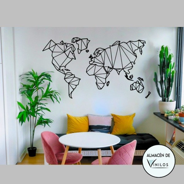 El planisferio geo mide 60cm de alto por 100cm de ancho, se vende por unidad en Vinilo autoadhesivo color negro mate. Es ideal para salas de estar o espacios de relax. Consultá por medidas personalizadas para tu pared y colores disponibles.